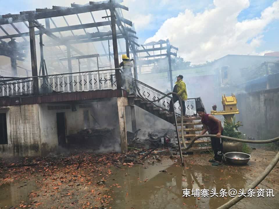 【柬埔寨头条综合报道】据本地媒体报道,8月23日上午11时许,干拉省大金欧市龙眼县一民宅突发大火,导致一名残疾老妇人葬生火海。警方通报,失火房东为75岁拉某,是一名残疾人士。房子面积约10m X 12m,整间房屋几乎被大火吞噬,包括一辆摩托车、厨房设备和家具等。