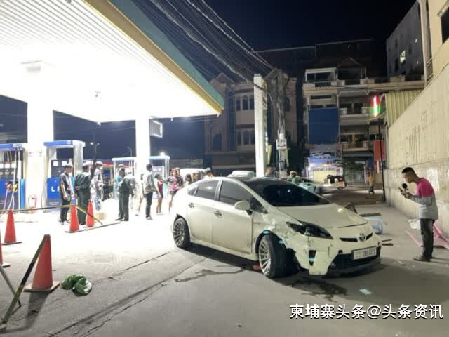 【柬埔寨头条综合报道】据柬媒报道,2025年9月1日凌晨2时50分,金边市棉芷区217号路发生一起酒驾交通事故。一辆白色普锐斯汽车先撞上一辆嘟嘟车,随后失控冲入路边加油站,造成一人受伤及财物损失。