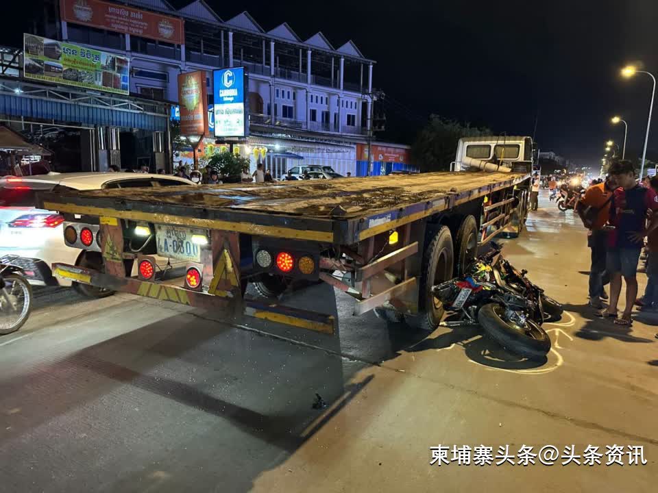 金边一美女骑机车超车不慎遭车祸,当场被碾死!