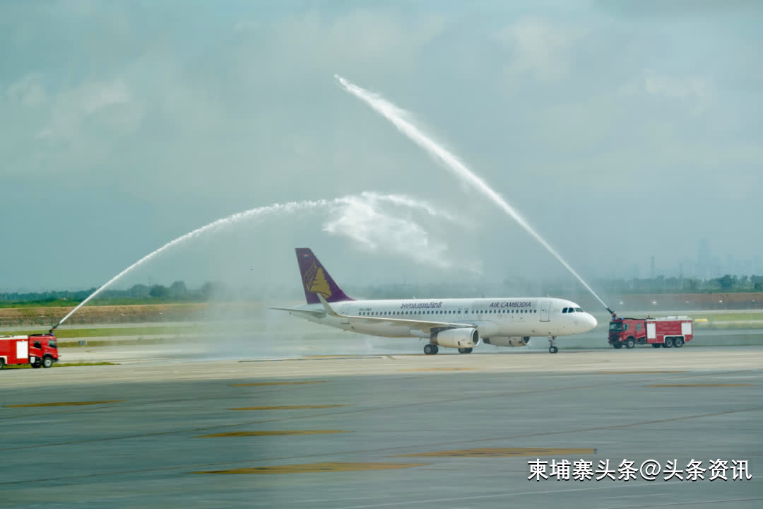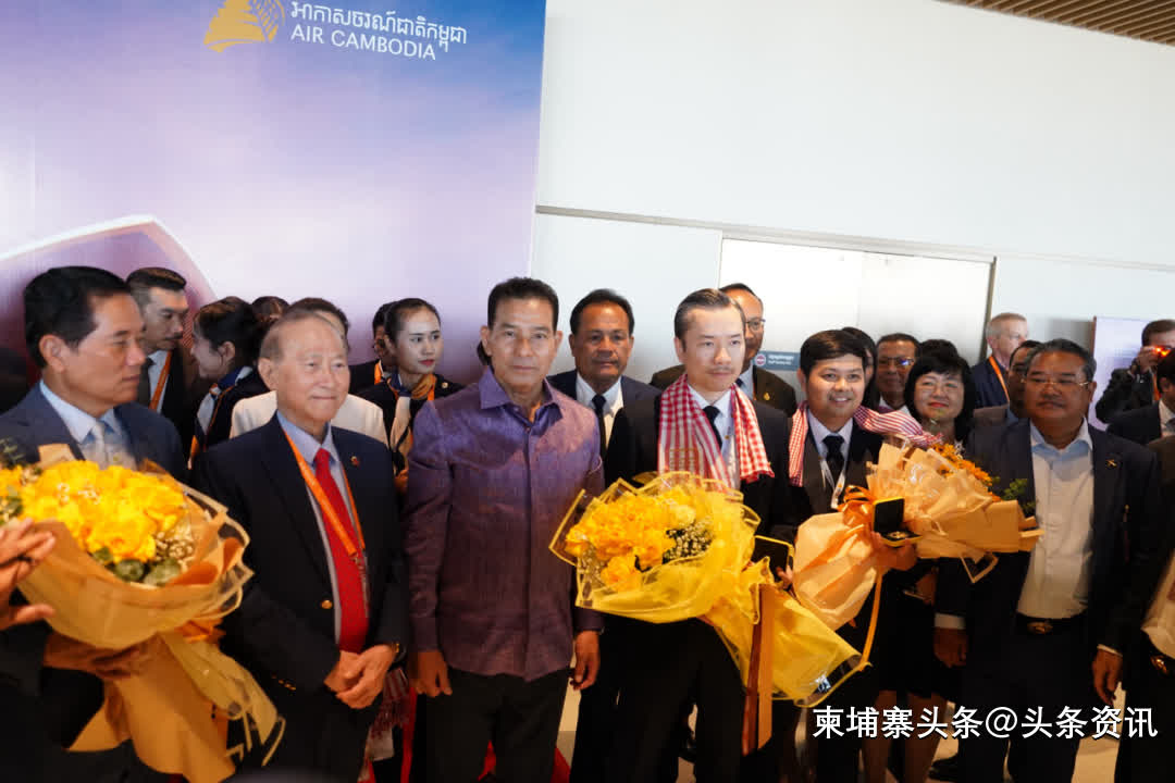 为庆祝这一历史性时刻,柬埔寨民航国务秘书处部长毛哈万那等多位高官亲临机场迎接。