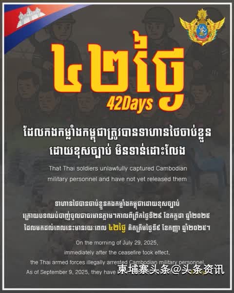 时至2025年9月9日,距离事件发生已过去整整42天,这18名柬埔寨士兵依然音讯全无。他们的命运仿佛一颗石子落入深谷,无声无息、令人揪心。