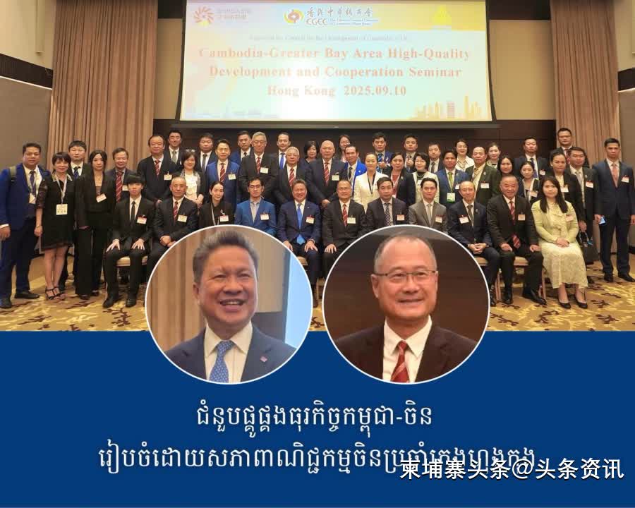 【柬埔寨头条综合报道】据柬媒消息,2025年9月10日,柬埔寨副首相兼柬埔寨发展理事会第一副主席孙占托率领柬埔寨代表团访问香港,与香港中华总商会举行投资对接会。代表团成员包括柬埔寨勋爵协会成员,香港中华总商会方面由会长、新华集团主席、粤港澳大湾区企业家联盟创会主席蔡冠深博士率团出席。
