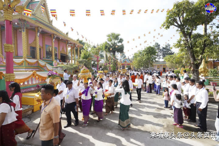 【柬埔寨头条综合报道】2025年柬埔寨一年一度的佛教节日“加顶节”,从本月8日开始至11月5日,活动为期一个月。据悉,每年佛历十月二十八是僧侣结束雨安居期的开禁节。翌日,佛历十一月初一,便是为期一个月“加顶节”的开始。每逢“加顶节”期间,柬埔寨社会各界人士共同捐献物资或现金,帮助佛教僧侣修建佛寺。在整个节日期间,信徒们会组织长队,参与向僧侣赠送袈裟的“加顶”仪式。