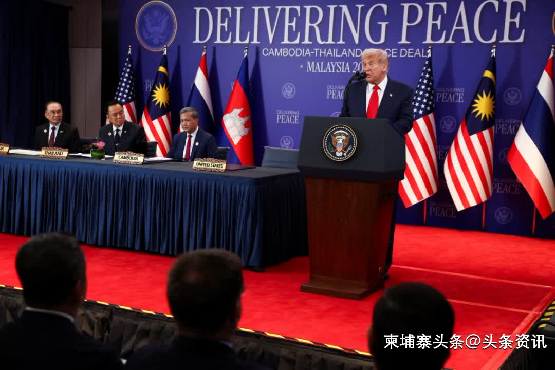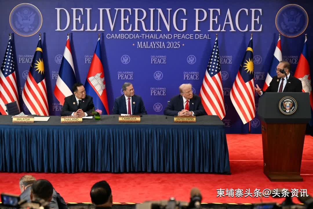 【柬埔寨头条综合报道】据柬媒消息,柬埔寨与泰国已于2025年10月26日上午正式签署和平协议。签署仪式由柬埔寨首相洪玛奈与泰国首相阿努廷共同完成,美国总统唐纳德·特朗普及马来西亚首相、东盟轮值主席安瓦尔·易卜拉欣共同见证。
