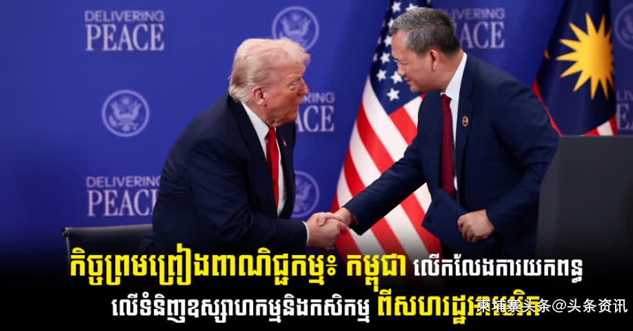 【柬埔寨头条综合报道】据本地媒体报道,美国与柬埔寨达成一项贸易协议,柬埔寨免除美国工业和农产品关税。 根据白宫10月26日(星期日)发布的声明,柬埔寨已同意取消所有美国商品的关税,包括食品和农产品以及工业产品。这意味着美国对柬埔寨的出口将无需缴纳关税。