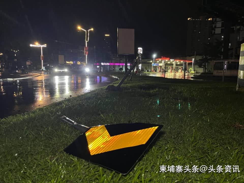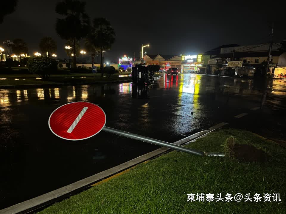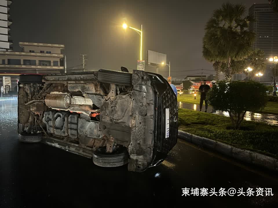 【柬埔寨头条综合报道】据柬媒消息,2025年10月29日凌晨0时12分,金边市水净华区发生一起单车交通事故。一辆豪华轿车在行驶中失控,撞上路缘石及多块交通指示牌后侧翻。