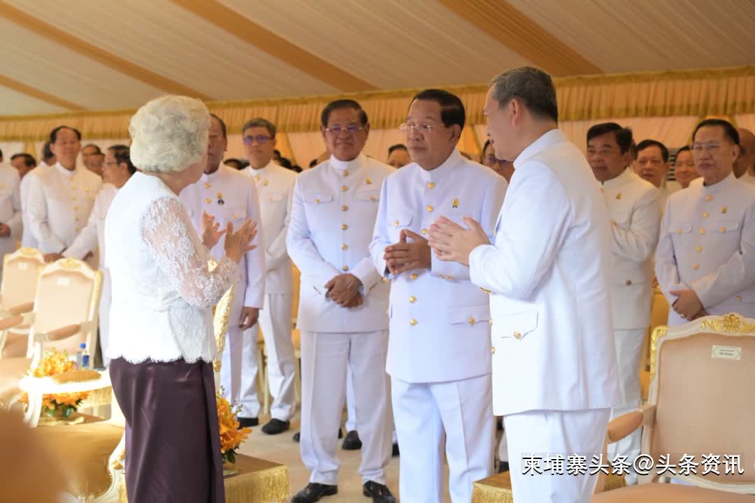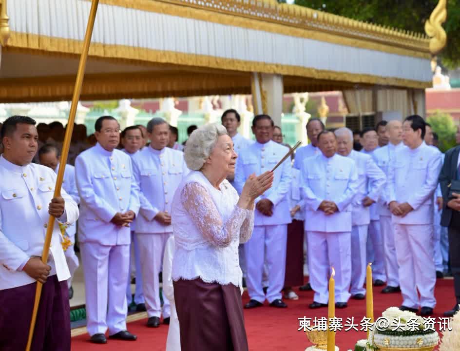 柬埔寨国母在王宫主持祈福仪式,参议院主席洪森和首相洪玛奈出席
