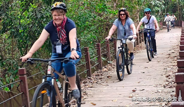 【柬埔寨头条综合报道】吴哥仙女机构近日发布消息称,自新冠疫情形势缓解以来,选择骑自行车探索吴哥窟旅游景点的游客数量稳步增加。 该局旅游发展与文化部主任表示,沿着一条23公里长的路线,平均每天有100多名自行车游客参观吴哥窟。