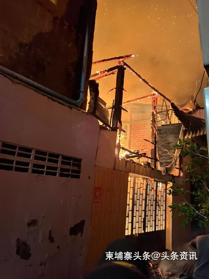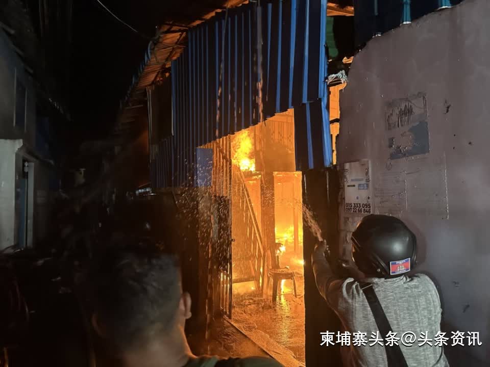 【柬埔寨头条综合报道】据本地媒体报道,12月22日凌晨3点30分,金边棉芷区下长夏社分区一民宅突发大火。警方通报指出,消防局接警后出动了12辆消防车,使用了7车水于同日5点把大火完全扑灭。经调查,消防局证实,此次大火系电线短路造成,但大火烧毁了大部分家具和设备,以及1000万瑞尔和1万美元现金被烧光。此外,大火还蔓延至邻居,导致邻居房子被全部烧毁。幸好此次大火未造成任何人受伤。(编译:Thomas)