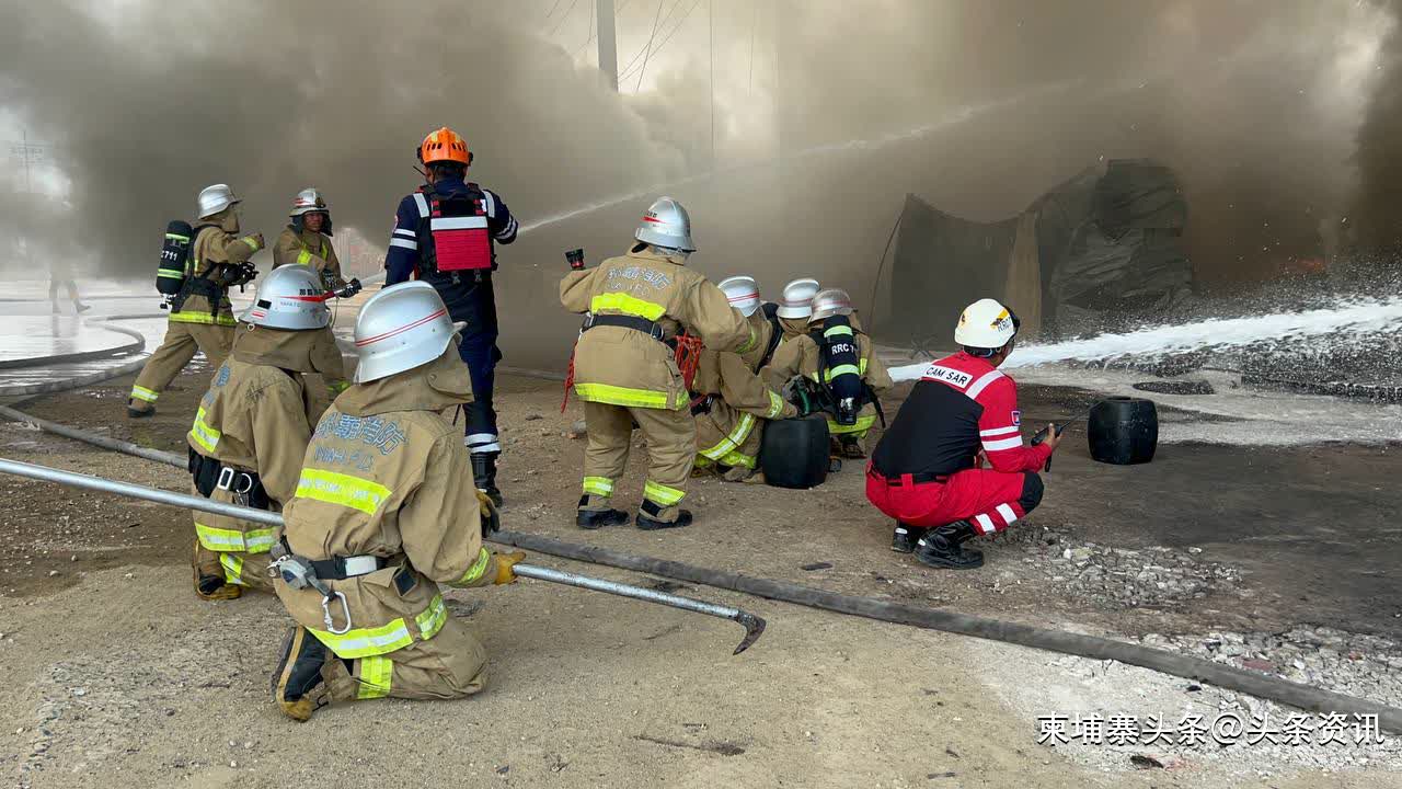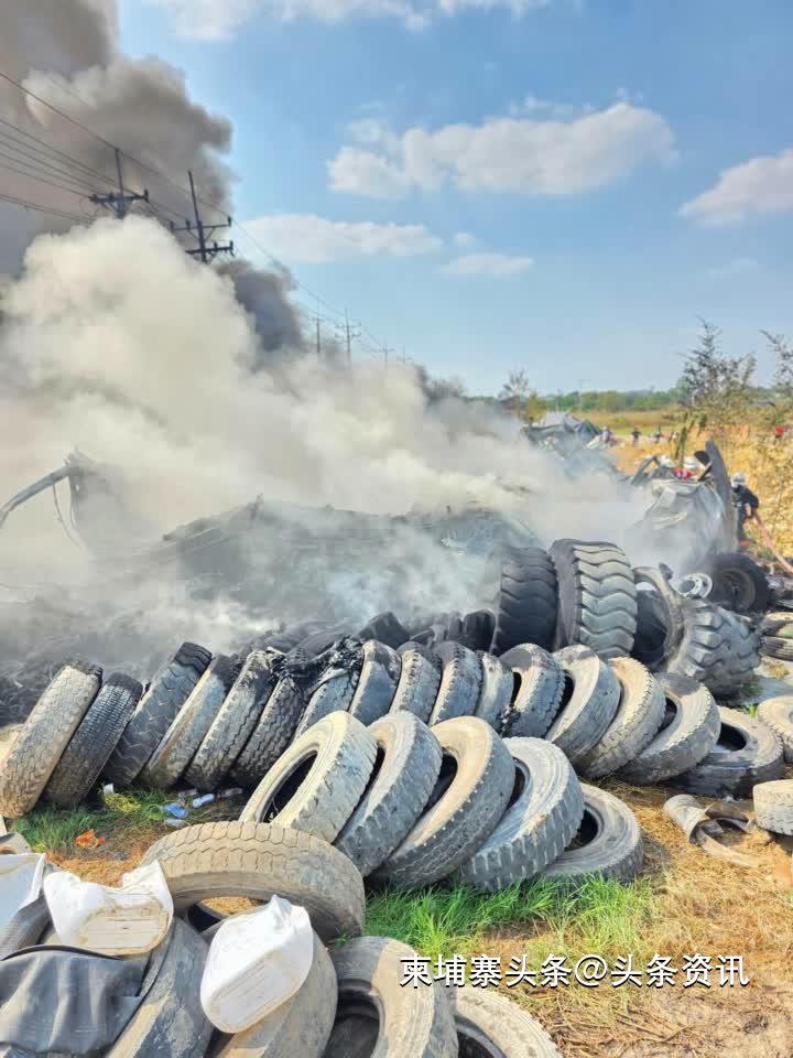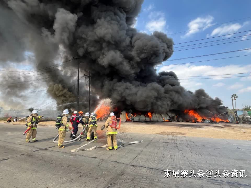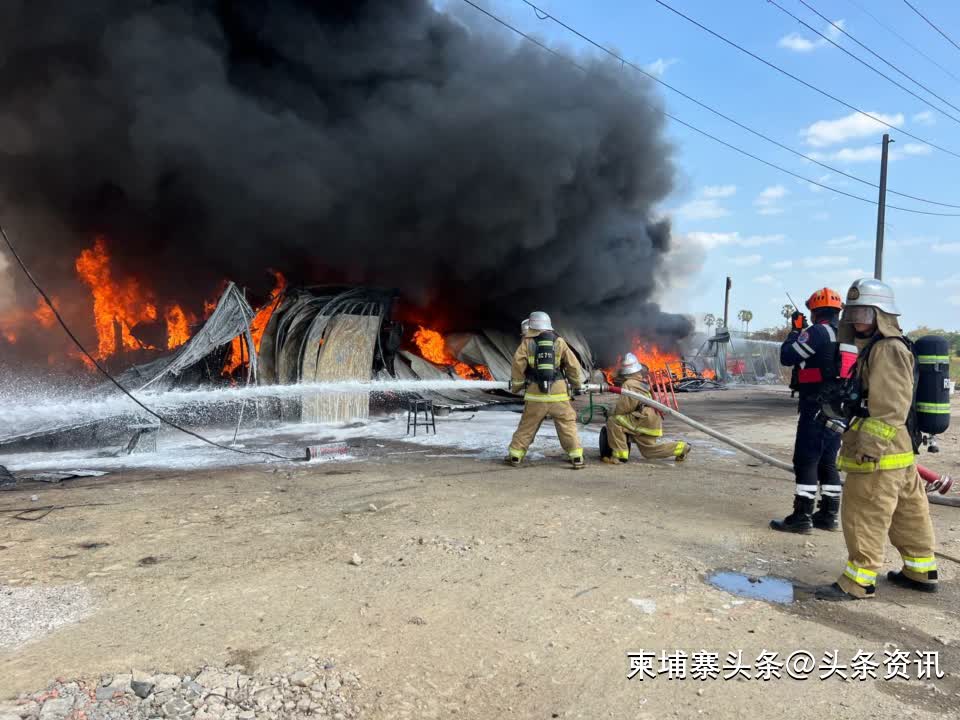 【柬埔寨头条综合报道】据柬媒消息,12月31日12时40分,干拉省干丹斯登县一家补胎厂突发火灾,现场浓烟滚滚,火势一度引发周边居民关注。 据了解,该补胎厂面积约10×30米,由钢铁和镀锌材料搭建。厂内存放有约100个新车胎和400个旧车胎,并存有地契、冰箱等物品,初步估算财产损失约5万美元。 该补胎厂所有者为一名36岁男子,来自特本克蒙省,从事轮胎修补工作。火灾发生过程中,房东不慎受轻伤,所幸并无生命危险。 警方调查确认,火灾系电线短路引发,火势未蔓延至周边房屋。消防部门迅速到场,出动12辆消防车进行扑救,最终成功将火势控制并扑灭。   (编译:安逸) |