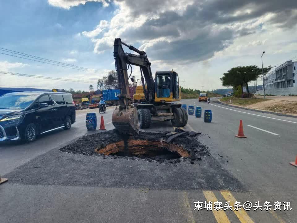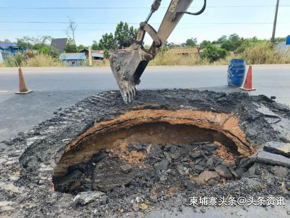 【柬埔寨头条综合报道】据柬媒消息,柬埔寨公共工程与运输部近日证实,位于西哈努克省4号公路213+525公里处发生路面塌陷。经查,事故起因为该路段下方一处拥有60余年历史的老旧排水管损坏所致。