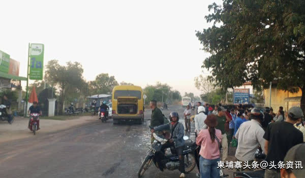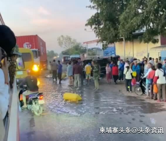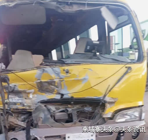 【柬埔寨头条综合报道】据柬媒消息,1月9日上午6时10分,柴桢省伦多县13号公路沿线发生一起严重交通事故。一辆运载工人的汽车与一辆集装箱车发生正面碰撞,造成2名女工腿部骨折,多人受伤。